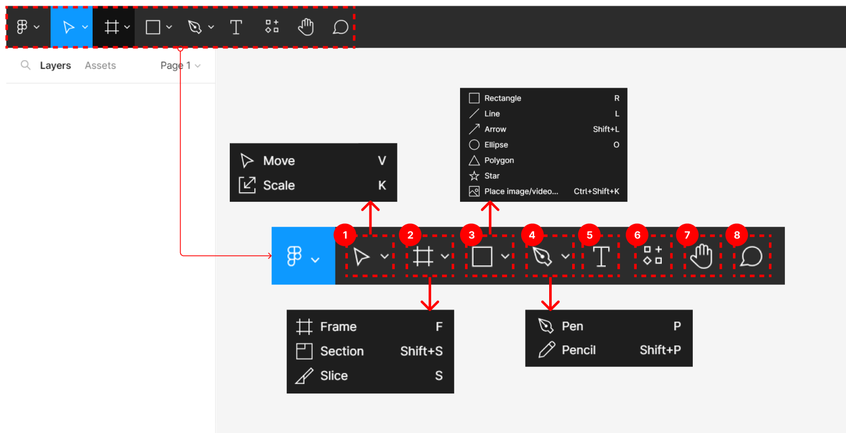 - Frame 툴: 아트보드와 같은 개념. 디자인을 담는 공간을 칭함