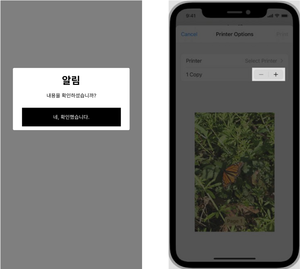 - 레이어 팝업이 노출될 때 뒷부분의 반투명 명암을 넣어서 레이어 팝업에만 집중하도록 한 형태