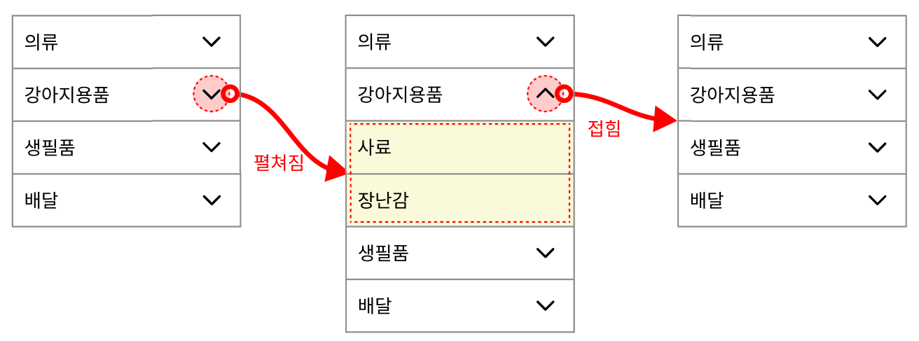 - 제한된 공간에 정보를 표현하고, 사용자가 원하는 정보만 선택적으로 볼 수 있게 접을 수 있는 내용 패널