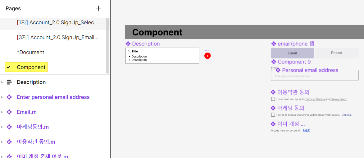 - 화면설계서 수정이 필요한 경우 각 페이지마다 수정하는 것이 아니라 컴포넌트 1개를 수정함으로써 컴포넌트의 인스턴스들도 동일하게 변경됨(반복 작업을 줄여줌)