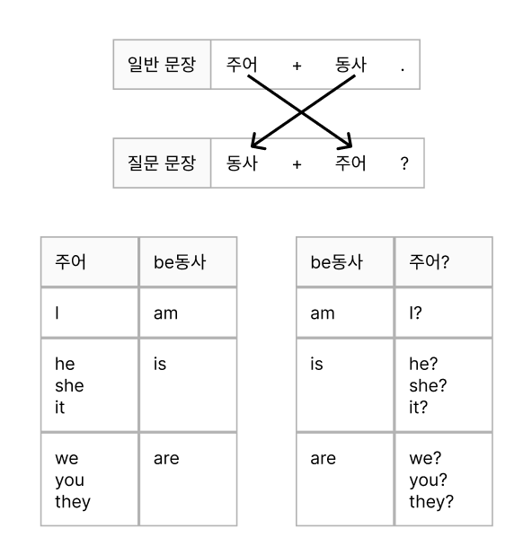 - 형식: Yes, 주어 + be 동사(긍정) / No, 주어 + be 동사(부정)