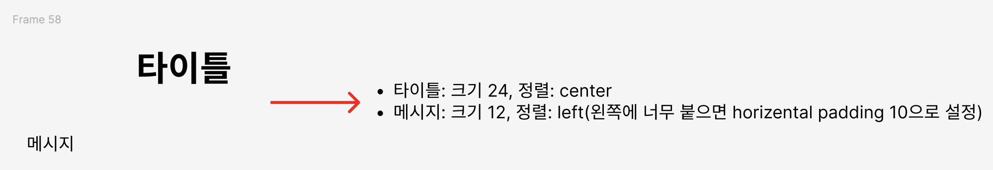 5. '타이틀'과 '메시지'의 글자 크기, 정렬 조정