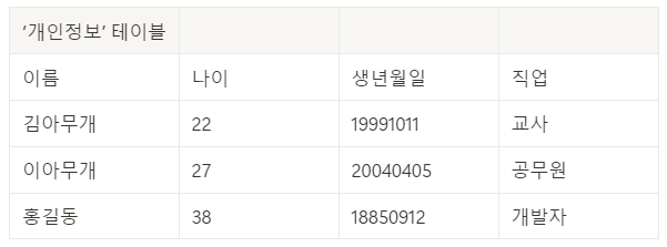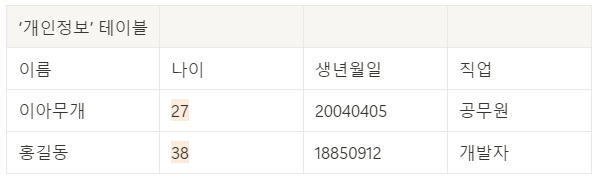 - ‘개인정보’ 테이블에서 나이가 26 초과한 행을 조회