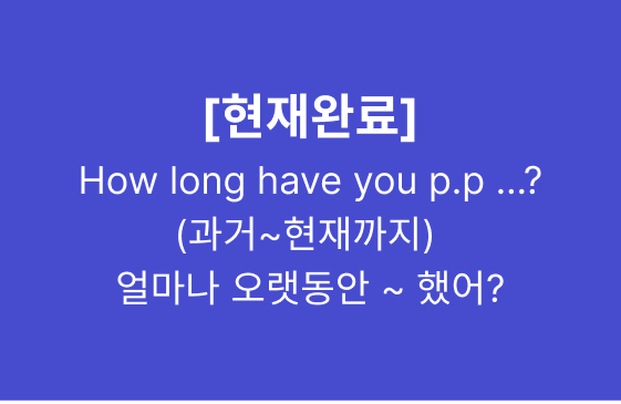 - 형태: How long have(3인칭 단수인 경우 has) + 주어 + p.p(과거분사) ... ?