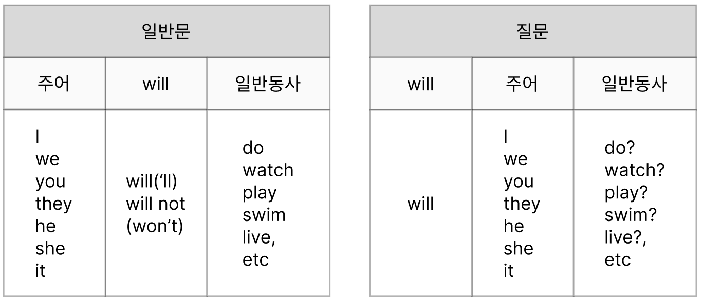 Will은 미래를 표현하거나, 제안/약속/결심을 표현할 때도 자주 사용됩니다.